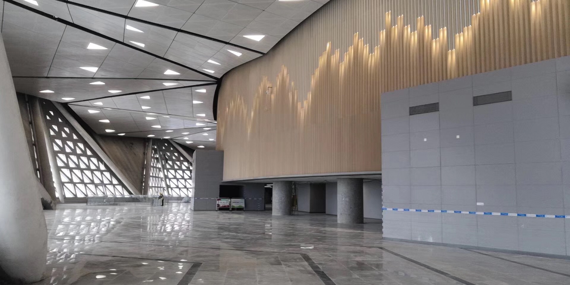 為鋁鎂錳直立鎖邊金屬屋面,罩棚立面采用銀白色穿孔鋁板幕墻系統(tǒng),通過有韻律的變化,表達了絲綢飄舞的動感,輕盈通透的罩棚在夜晚能夠透出賽場內(nèi)熱烈的賽事氣氛,宛如皓月長空下綻放的盛世之花。碗型看臺分為上、中、下三層座席,并在中上層看臺之間設(shè)置包廂層(包括66個大小包廂)及其座席區(qū),觀眾分別由各層看臺對應(yīng)的通道進入。