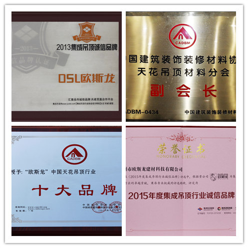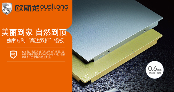 歐斯龍以品質(zhì)為核心,是高邊雙扣的倡導(dǎo)者,絕不使用再生鋁。率行業(yè)之先,通過ISO9001、2000國際質(zhì)量體系吊頂,并榮獲中國吊頂行業(yè)十大公認品牌、家裝五大品牌、工裝十大品牌、中國優(yōu)秀綠色環(huán)保產(chǎn)品,中國行業(yè)質(zhì)量優(yōu)秀產(chǎn)品等榮譽,是中國建筑協(xié)會推薦產(chǎn)品及天花吊頂材料分會副會長單位。